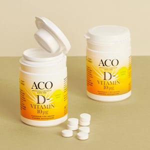 - ACO Vitaminer – Ett urval av kosttillskott som stödjer kroppens behov av vitaminer och mineraler – allt från D-vitamin till multivitaminer för kvinnor och män.