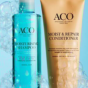 - ACO Hair Care – återfuktande och volymgivande schampon och balsam. Produkterna är parfymfria och milt rengörande.