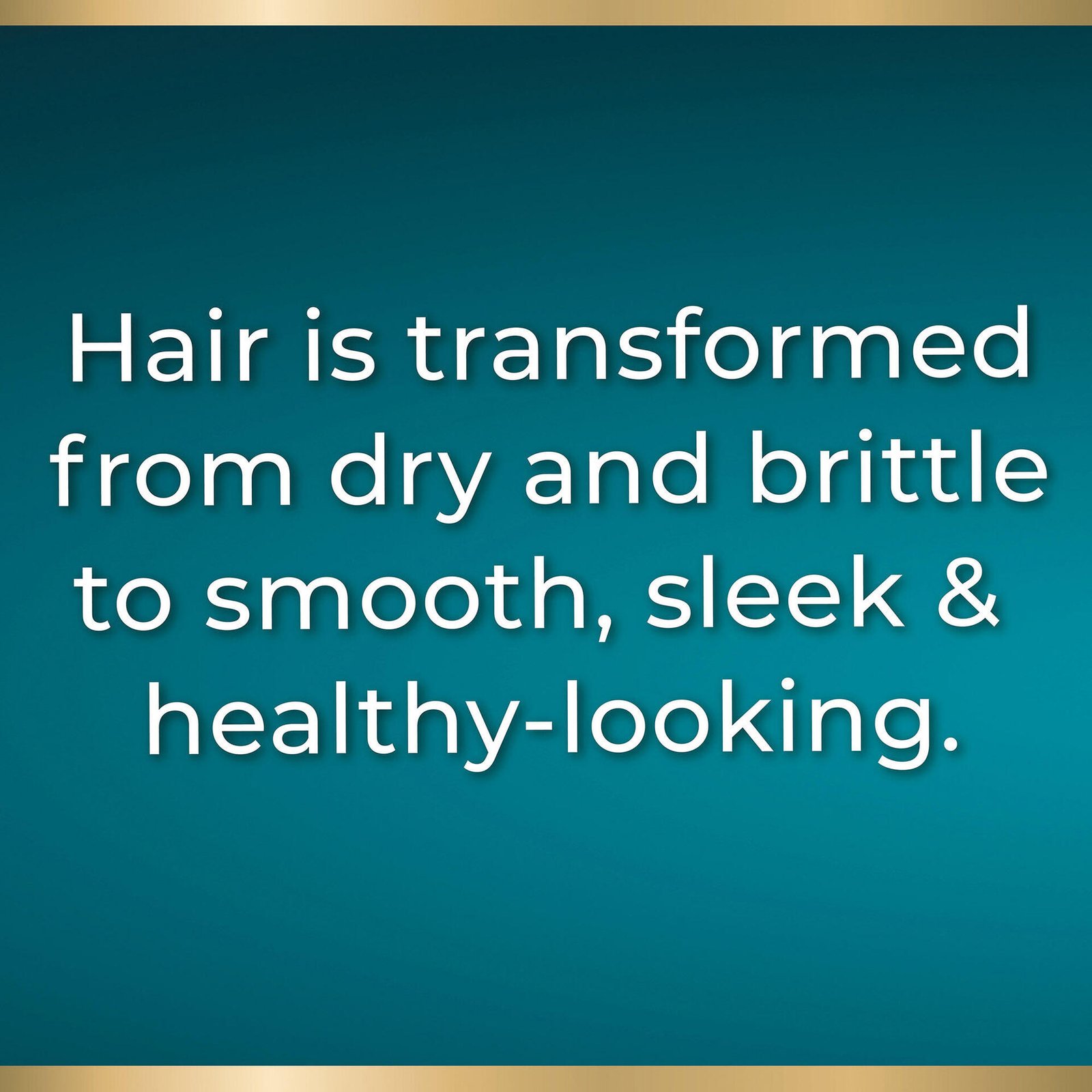 Oljan hjälper till att reparera och stärka torra, skadade hårstrån samtidigt som den kapslar in fukt och effektivt minskar friss och flygiga strån med upp till 80 %. Resultatet blir mjukare, mer följsamt och strålande glansigt hår som känns fem gånger starkare.