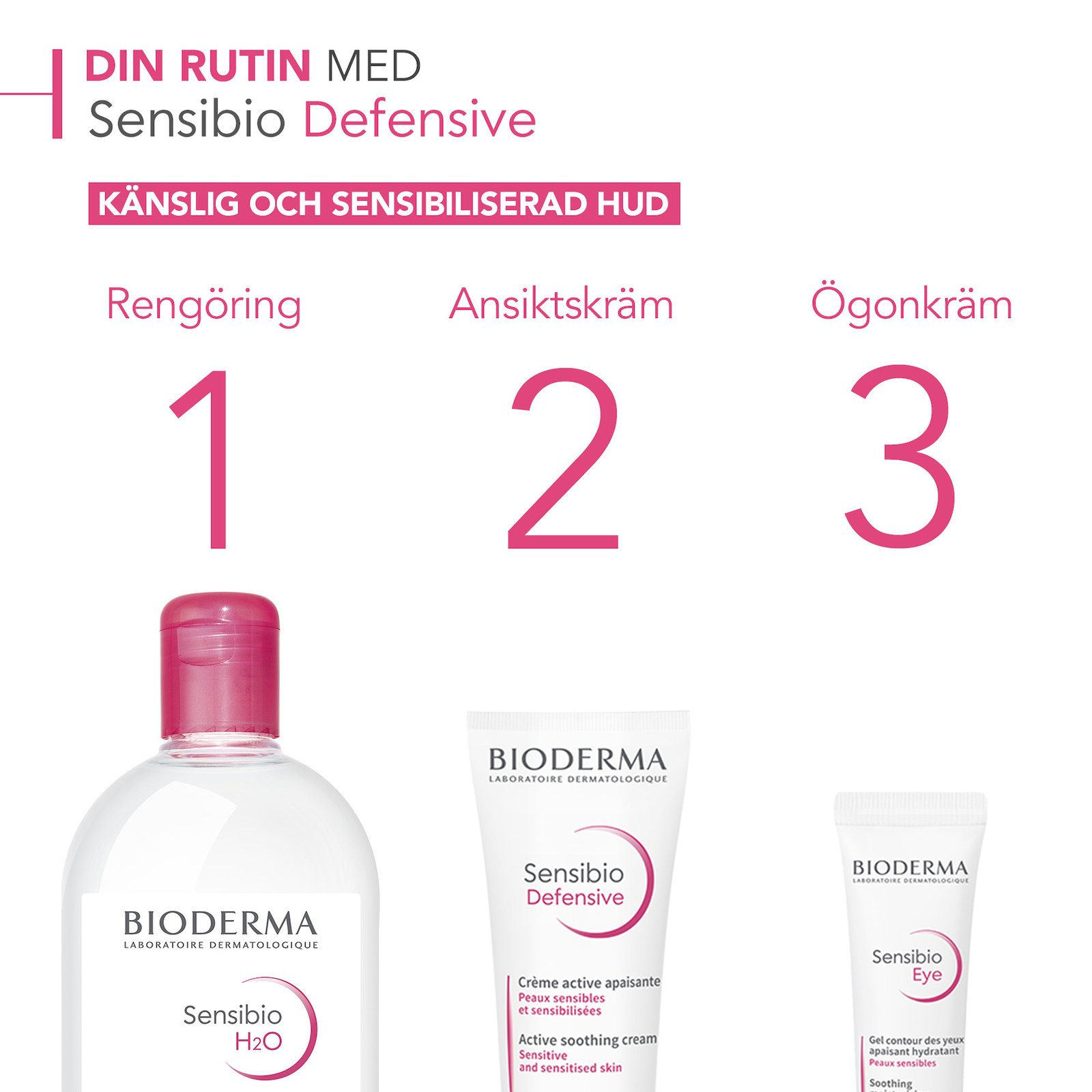 Morgon och/eller kväll. Rengör din hud med Sensibio H2O eller Sensibio Gel moussant och applicera sedan Sensibio Defensive i mängd som en grön ärta i ansikte och på hals. Massera försiktigt in tills huden absorberat all creme.
