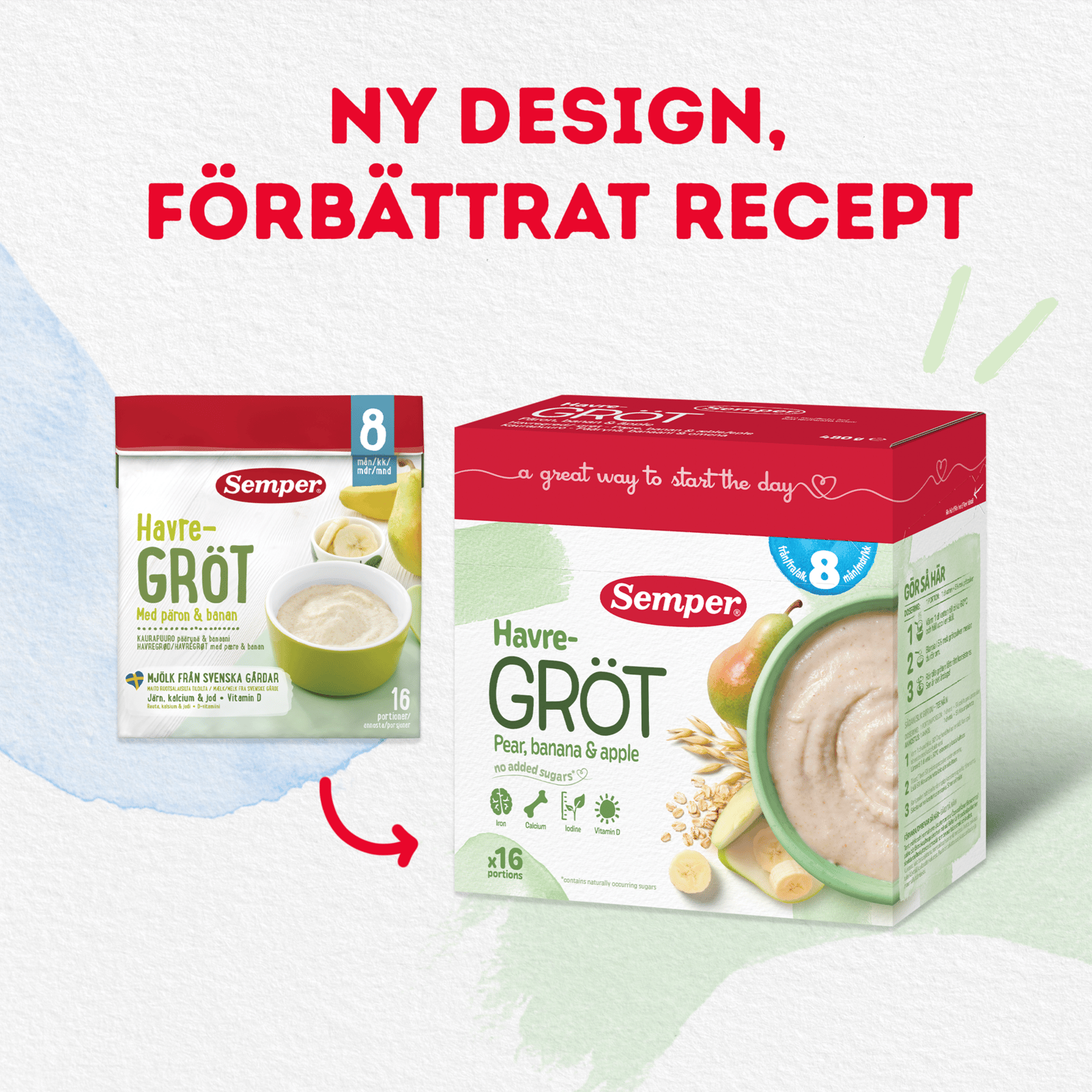 Gröten är berikad med viktiga näringsämnen som järn, som stödjer barnets kognitiva utveckling, jod för normal tillväxt samt kalcium och vitamin D, som bidrar till skelettets utveckling och immunsystemets funktion.