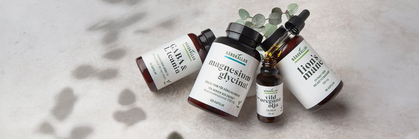 Närokällan erbjuder kosttillskott för vardagens alla behov – här hittar du vitaminer, mineraler, omega-oljor och mycket mer.