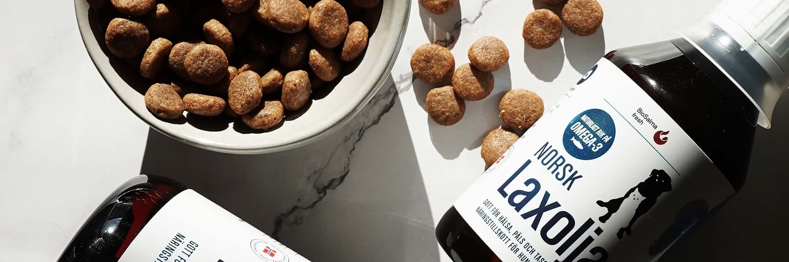 Norsk laxolja är ett populärt val för dig som vill ge ditt husdjur lite extra glans i vardagen. Omega 3 & laxolja spelar en viktig roll i kroppen och kan stödja hudens barriärfunktion och bidra till en blank och mjuk päls. Detta är välkända och vetenskapligt etablerade egenskaper hos omega tre som gör laxolja till ett naturligt komplement i många hem med fyrbenta familjemedlemmar. Norsk laxolja passar både hundar och katter och är ett enkelt sätt att ge extra smak och extra omtanke på samma gång.
