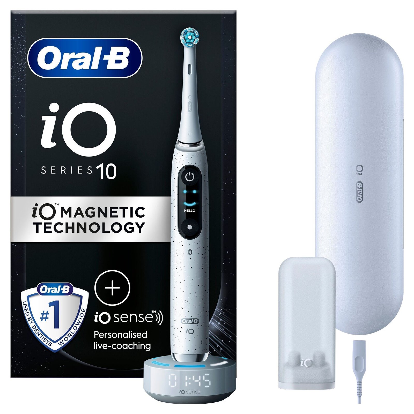 iO 10 Eltandborste Stardust White, 1 tandborsthuvud, 1 laddningsbart resefodral