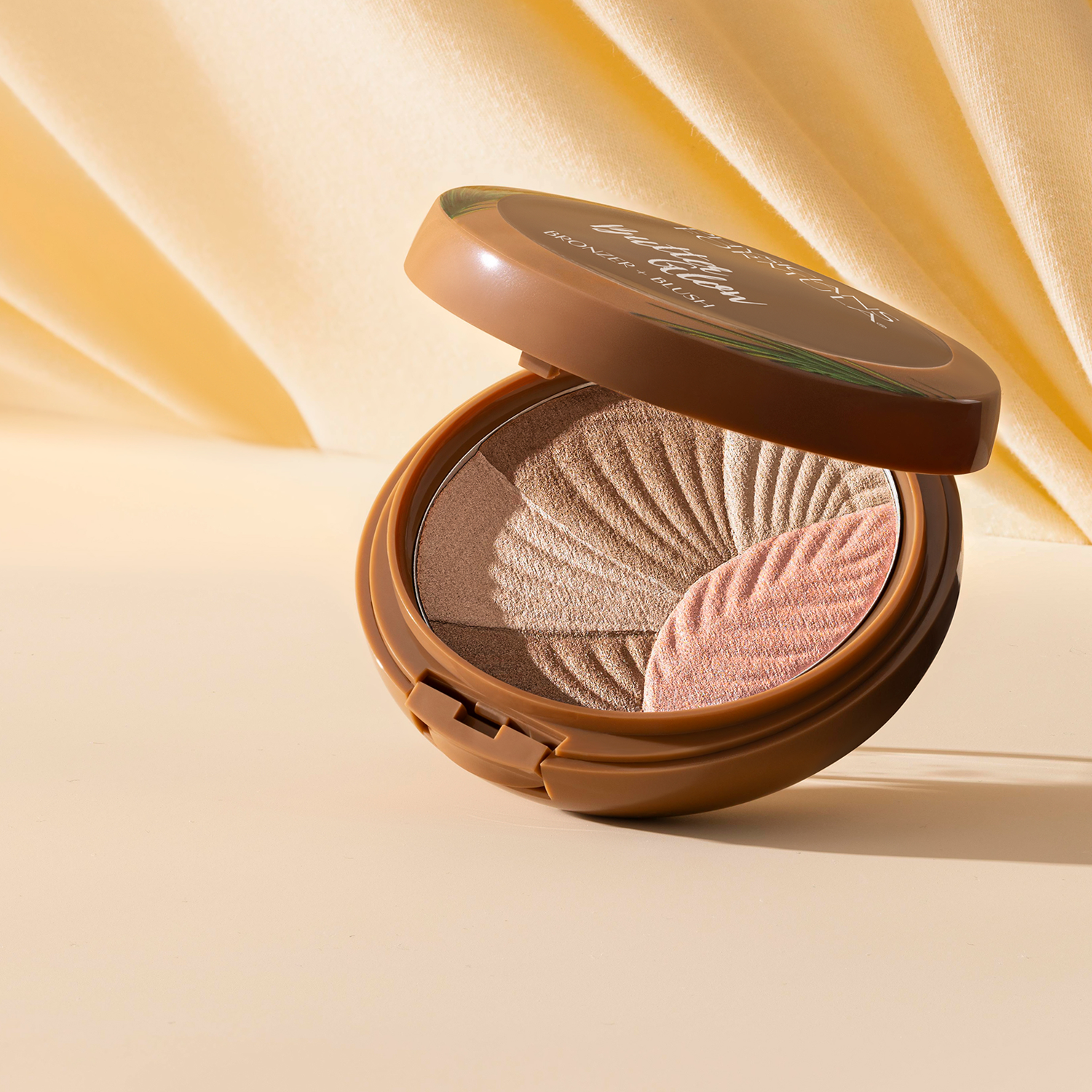 Kan användas ensamt eller över smink. Använd applikatorn för att blanda alla nyanser tillsammans på huden. Applicera bronzern över ansikte och hals för en naturligt solkysst effekt och svep rouge över kinderna för en färgklick. För att framhäva och konturera, applicera mer över kindbenen.