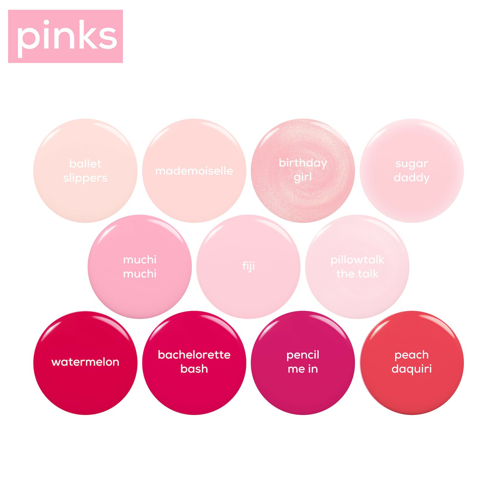 Applicera först ett lager Essie base coat. Applicera sedan två lager Essie 6 ballet slippers nagellack för ett heltäckande resultat. Avsluta med att applicera Essie top coat för att ge dina naglar ett långvarigt och superglansigt resultat.