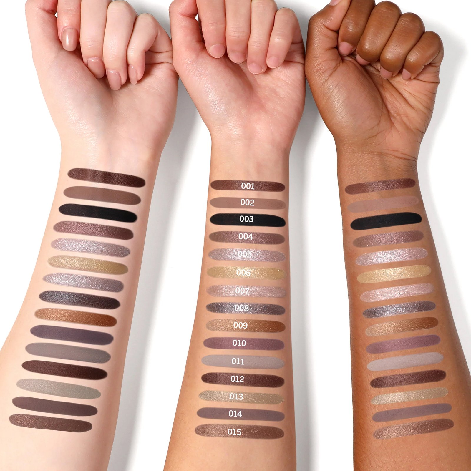 De fem matta skuggorna har en mjuk och silkeslen formula som gör det enkelt att bygga djup och skapa en jämn bas. De tio skimrande nyanserna ger ögonmakeupen extra dimension med sin strålande lyster. Alla färger är lätta att blanda och bygga upp för ett sömlöst och hållbart resultat.