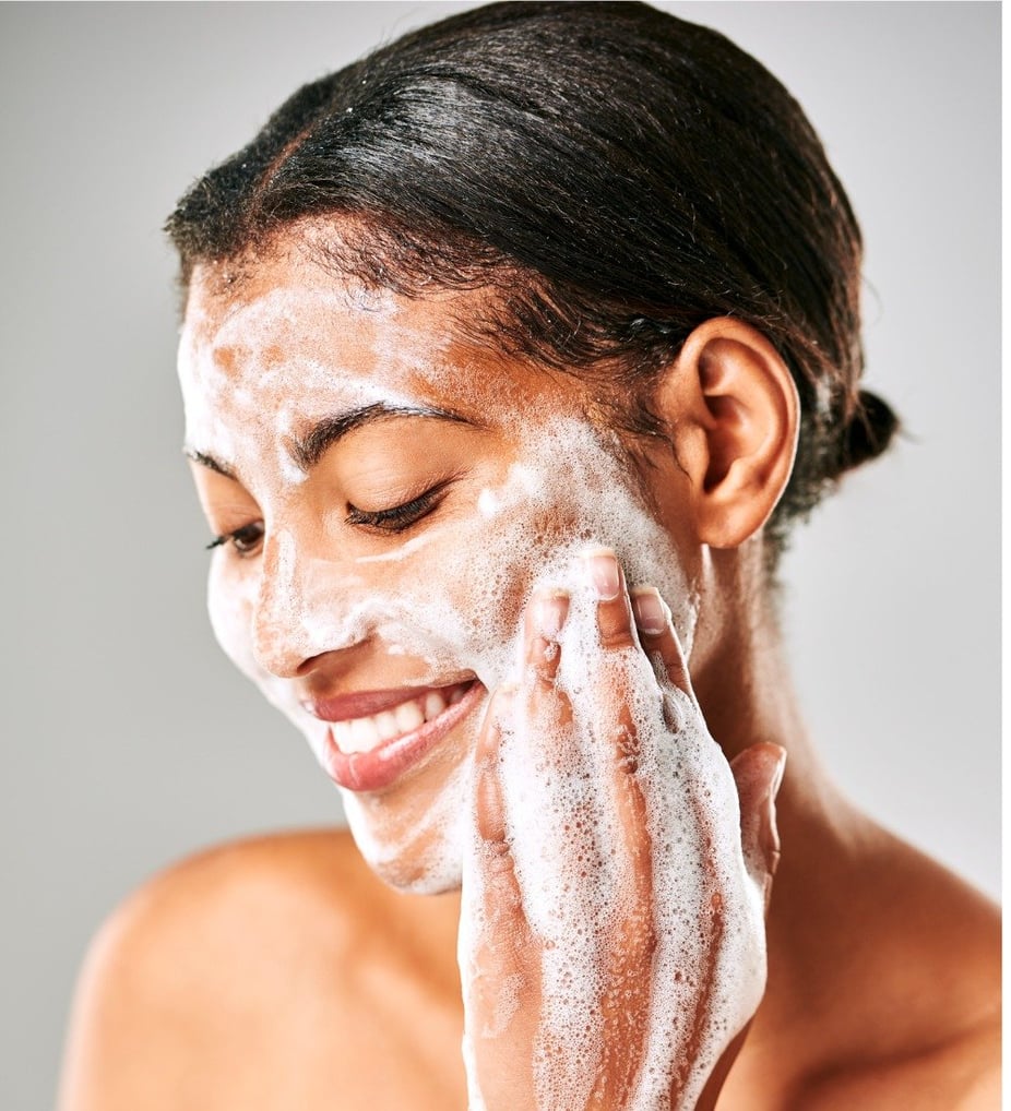 Steg 1 – mild ansiktsrengöring som passar aknebenägen hud
