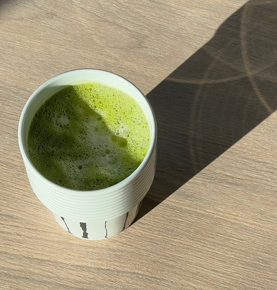 Matchalatte, en populär dryck där japanskt grönt te blandas med varm skummad havremjölk. Sugen på att testa? Här får du ett riktigt gott recept på matchalatte – och hur du gör steg för steg!