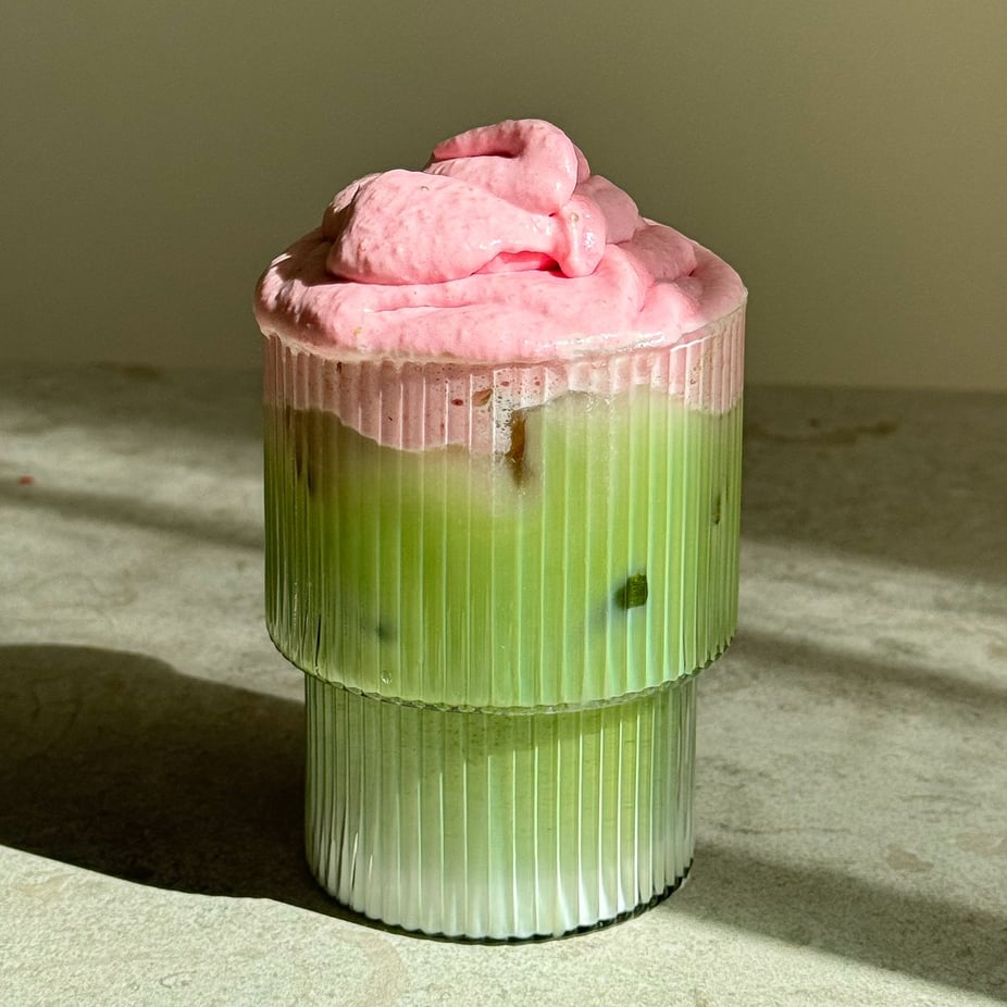 Redo att ta din matchalatte till nya nivåer? Då måste du testa strawberry matcha. En len, krämig och härligt grön matchalatte toppad med jordgubbsfluff. Mums! Här kommer ett busenkelt recept.