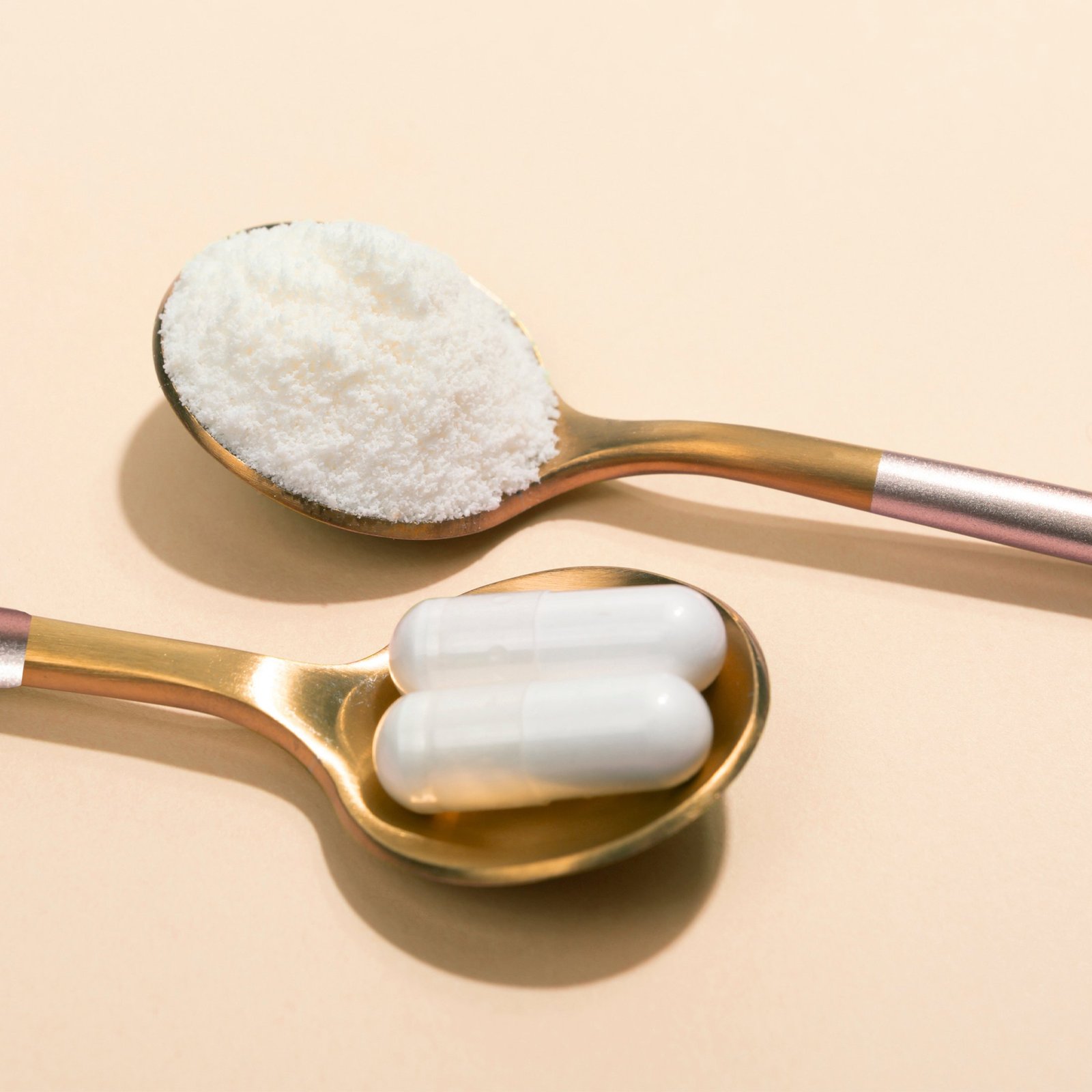 Huden består till stor del av kollagen, men kroppens egen kollagenproduktion avtar med åldern. Därför väljer en del att komplettera med kollagentillskott. Det är ofta i flytande eller pulverform, så att du enkelt kan blanda det i mat eller dryck.