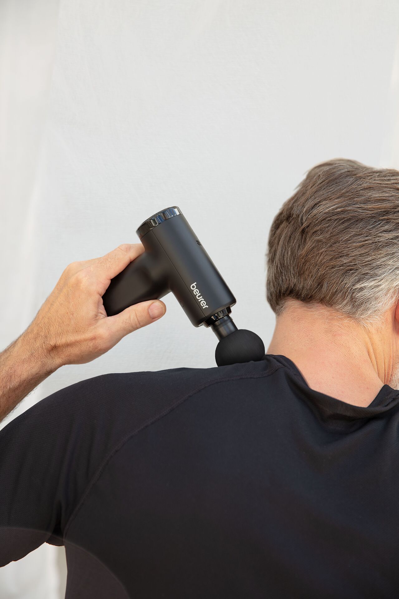 Massagepistolen levereras med tre högkvalitativa massagehuvuden som gör det enkelt att rikta in sig på olika muskelgrupper. Den är lätt och smidig att hantera och tack vare sitt kraftfulla litiumjonbatteri kan du använda den i upp till fyra timmar på en laddning. LED-skärmen visar tydligt batterinivå och vald intensitet för enkel kontroll.